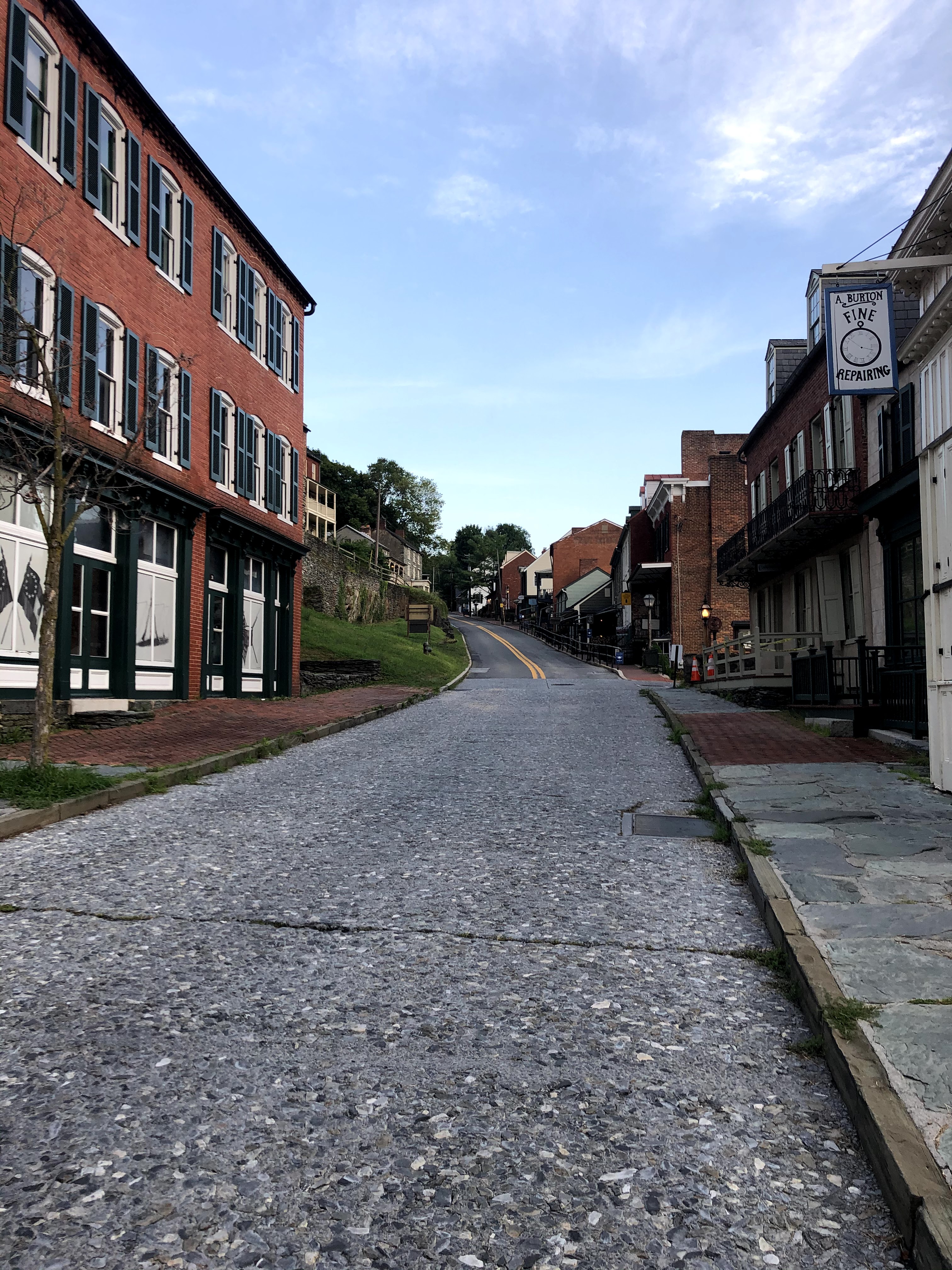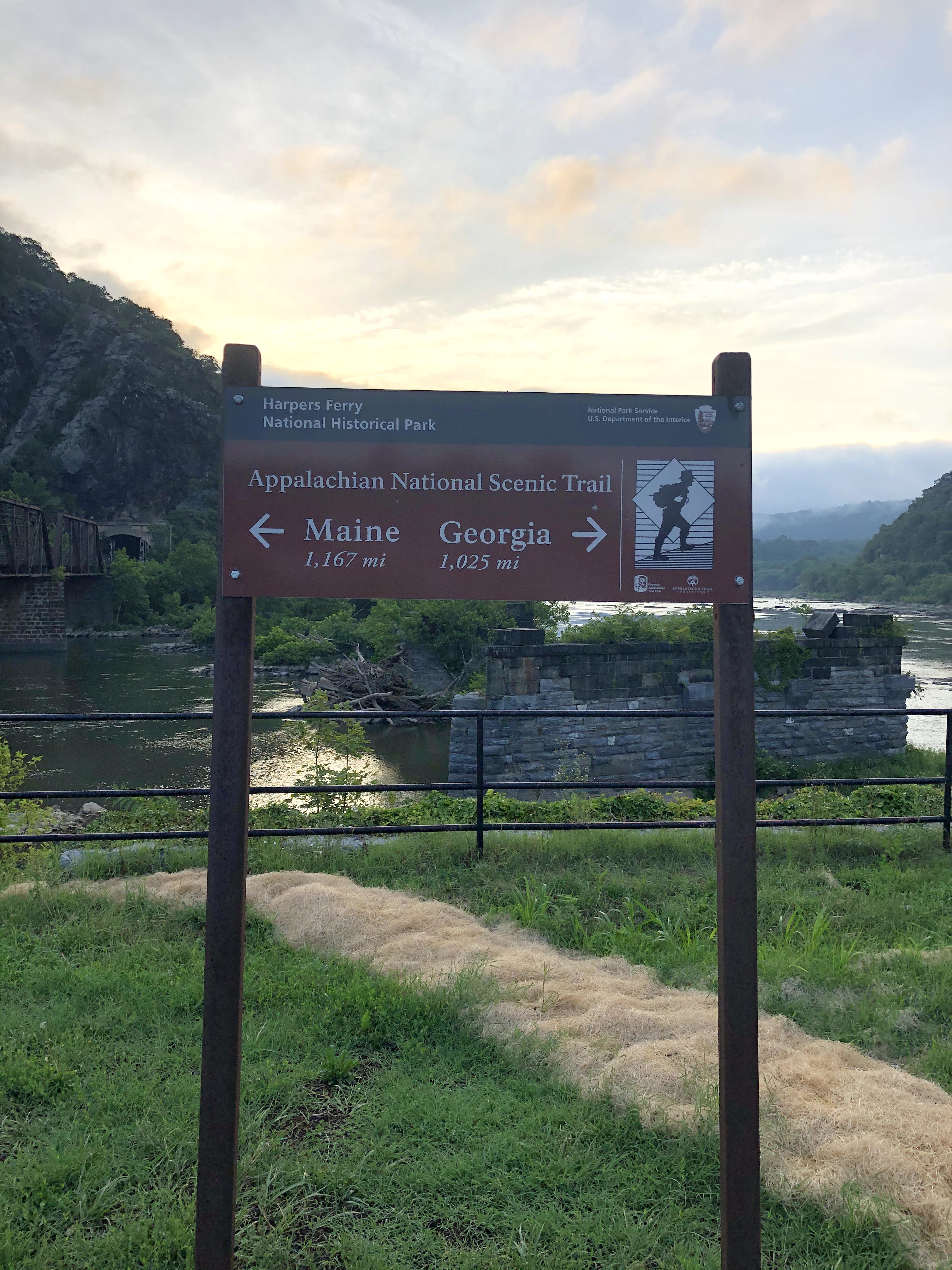 After leaving my car at the Gathland South Parking lot, we drove 15 minutes to Harpers Ferry, home of the Appalachian Trail Conservancy Headquarters. You have to download their parking app to be able to park on the streets, which was almost an issue because service was terrible. If you’re thinking about going there, download the Parkmobile app first. We walked down the main street up towards the Conservancy building – closed at 6:15a.m. for some reason. We took a selfie, and I started to daydream about what the picture will look like when we end our AT adventure coming from the opposite way. Will it be five years from now or fifty?