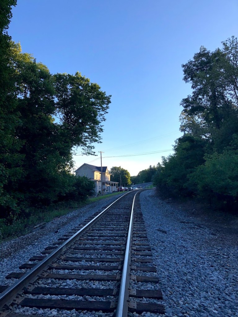 Once we arrive at Pen Mar Park, a really lovely looking place to have a picnic and let kids run around, the hike down to the Mason-Dixon line marking the start of the Pennsylvania section of the trail. It was a cool morning, but the walk down the gravel road and then over train tracks got enough blood pumping that a jacket wasn’t necessary. At the Mason-Dixon line, there is a mailbox with a notebook where hikers leave the date, their names or trail names, and why they are hiking. As I was writing our names, Henry suddenly declared his trail name — for the next five minutes — was going to be Sunshine, which is why his name is crossed out and Sunshine written above.