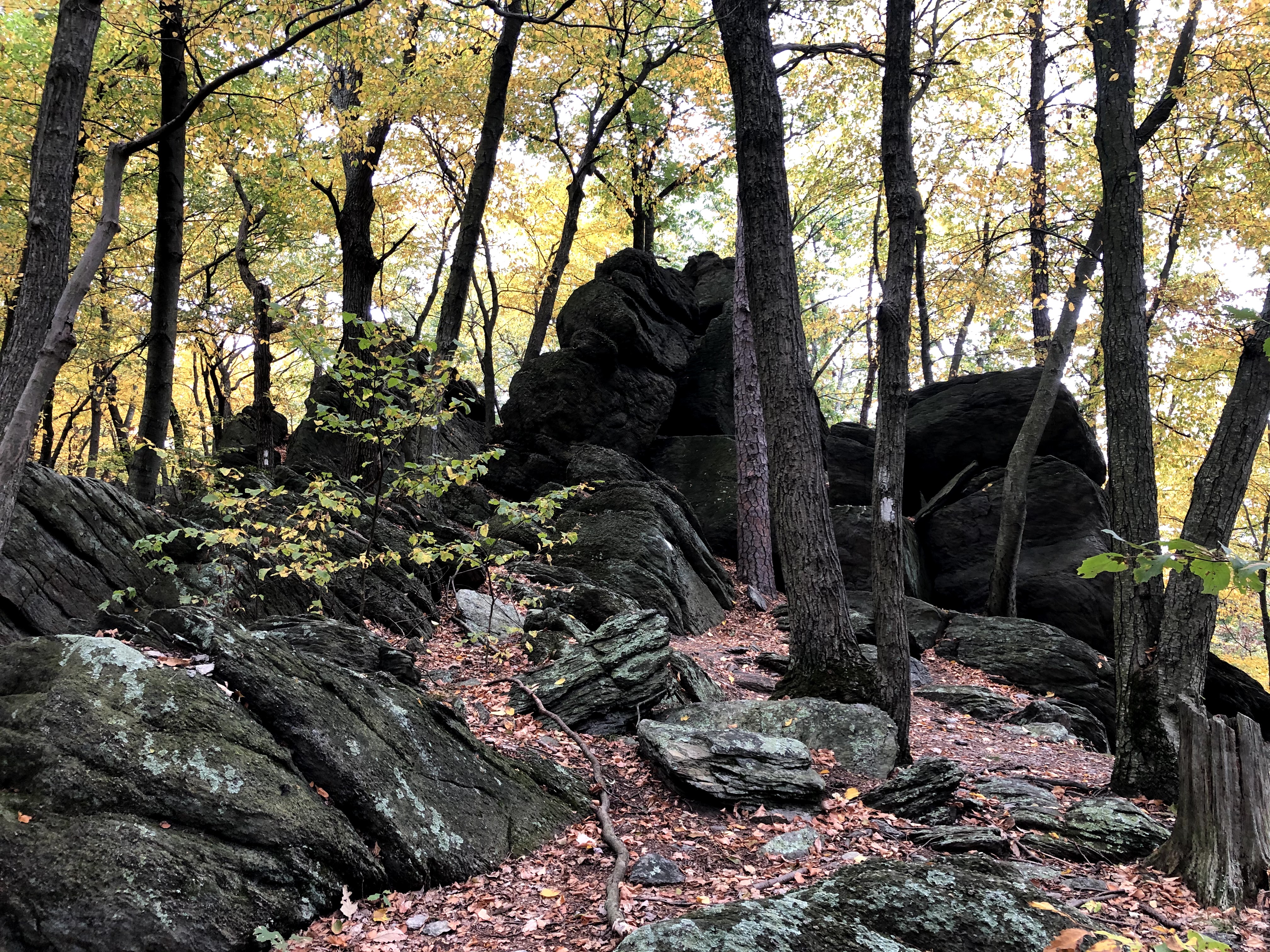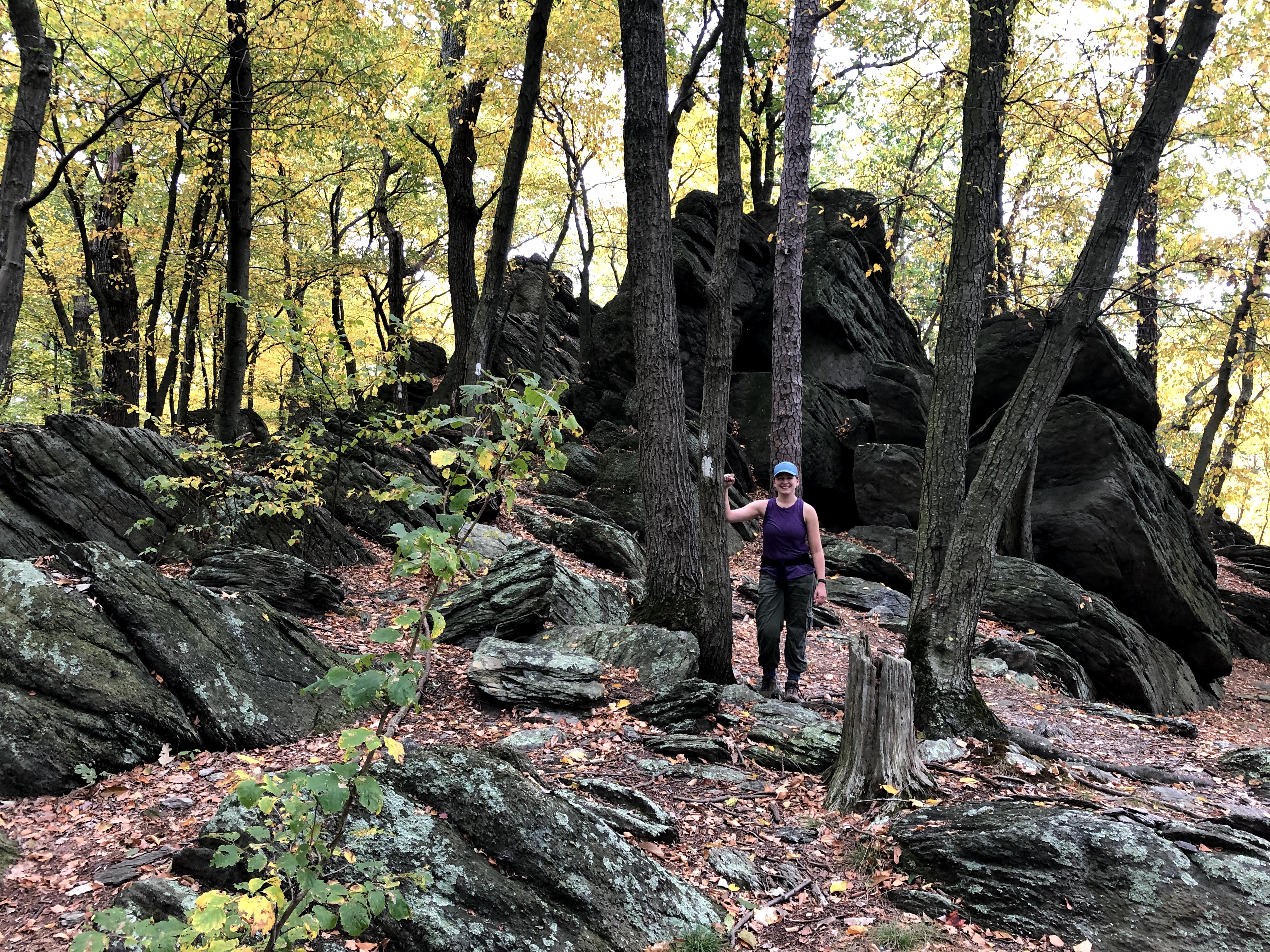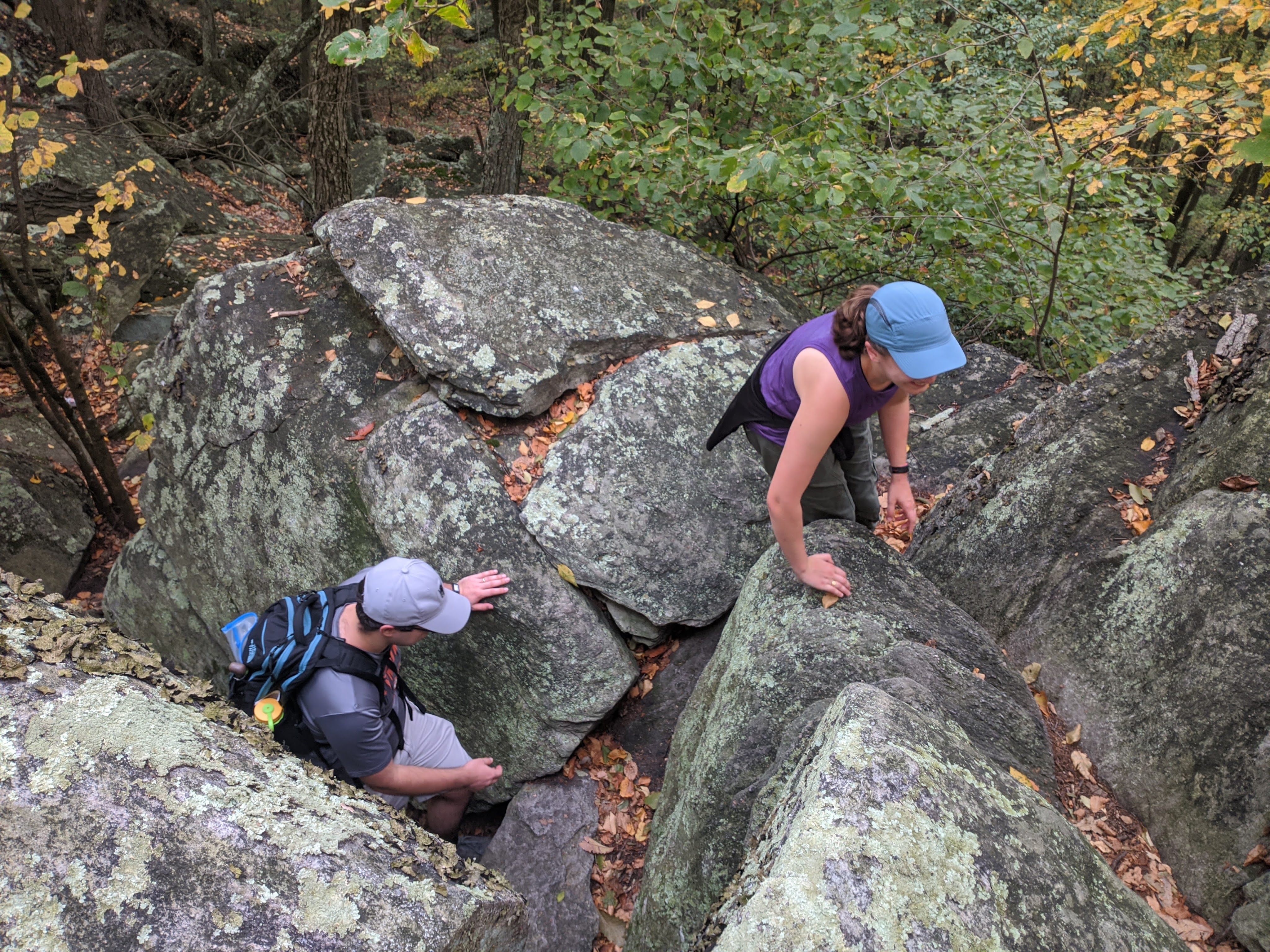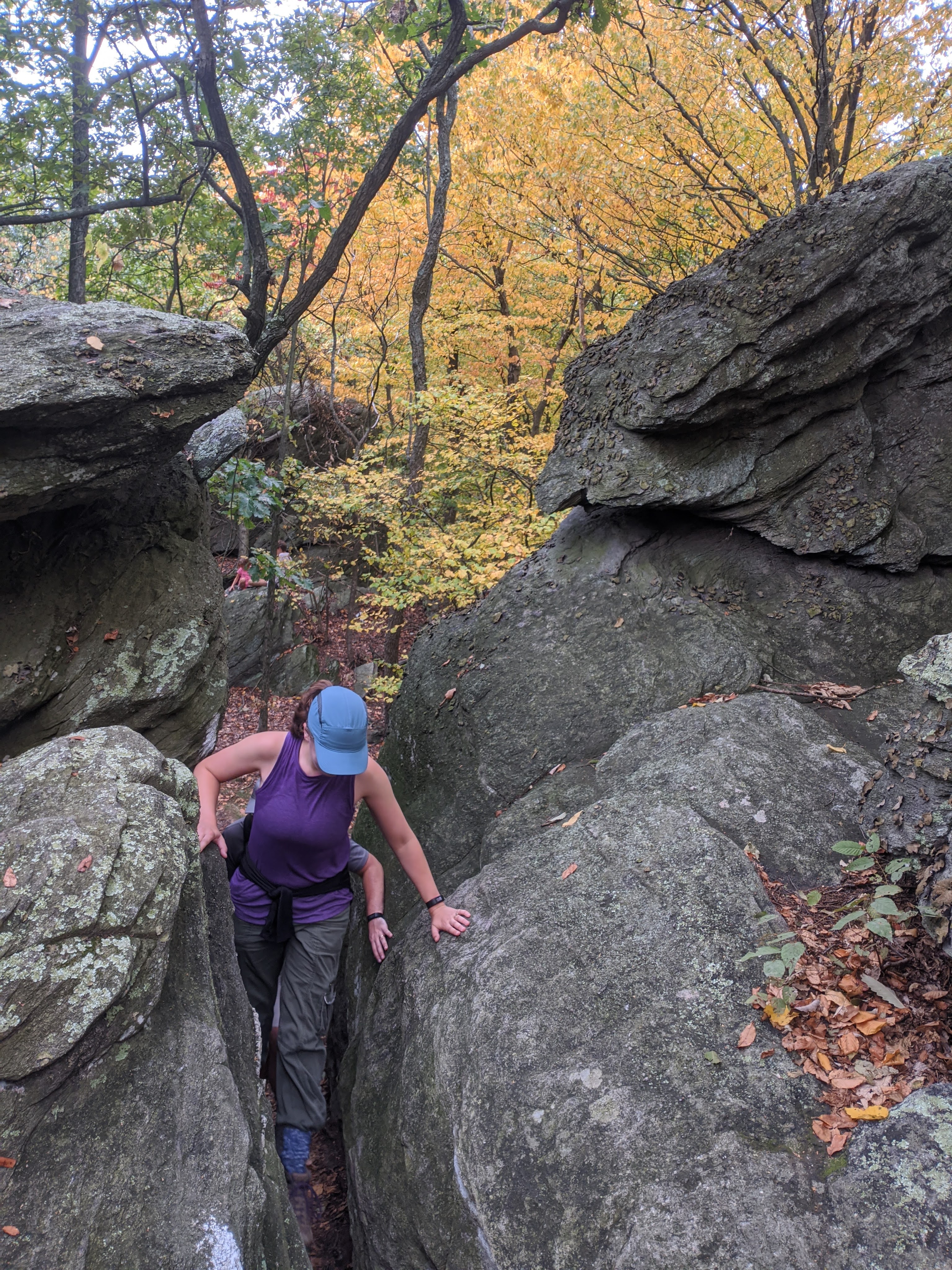 Rocky Ridge deserves it’s name. We saw some rocks in Maryland, and I complained about them here. We saw some rocks earlier in Pennsylvania, and we were able to walk around the biggest of them. But never have we had to scale actual boulders. Pictures are going to do the rocks more justice than my words. Here they are: