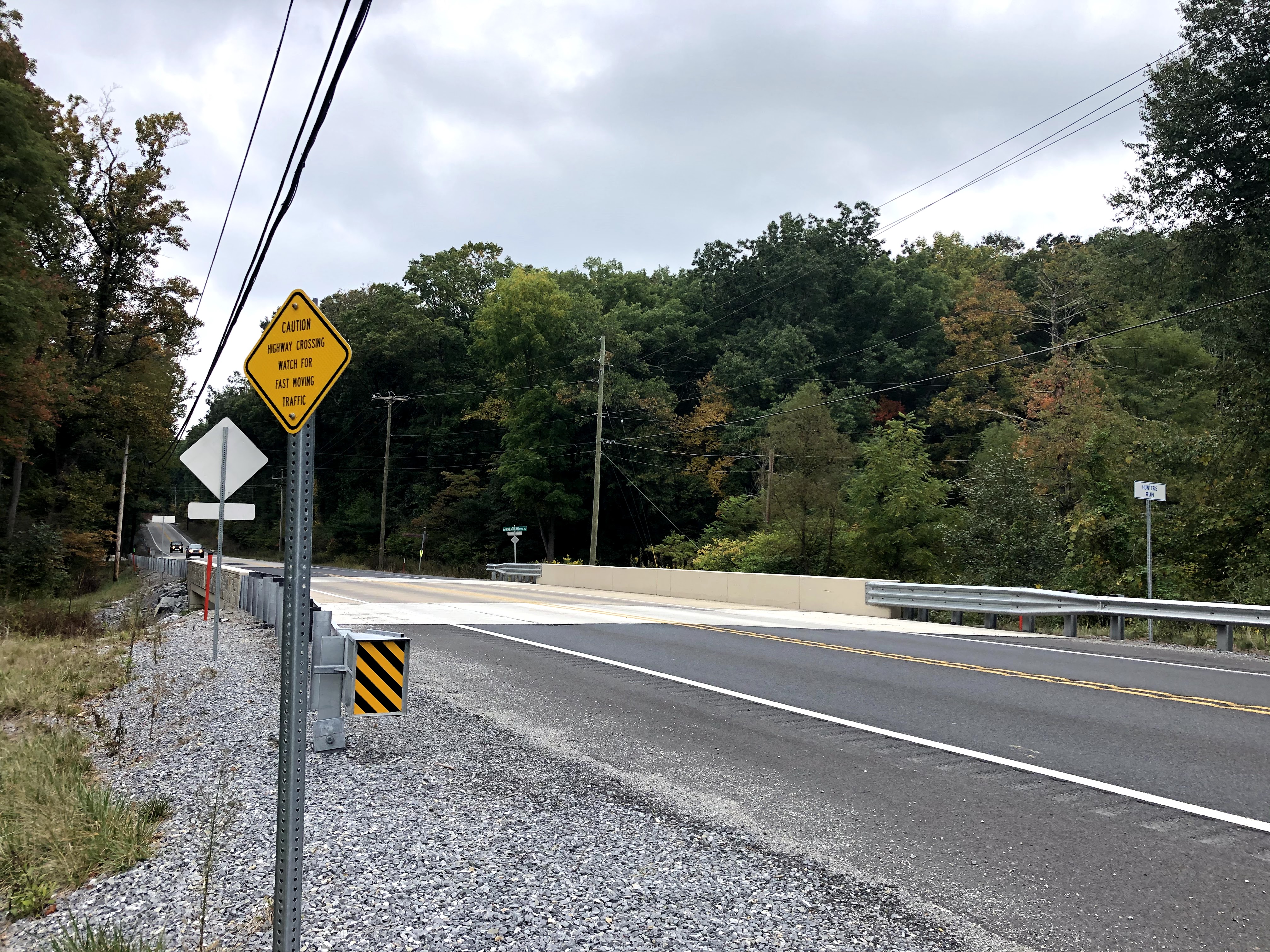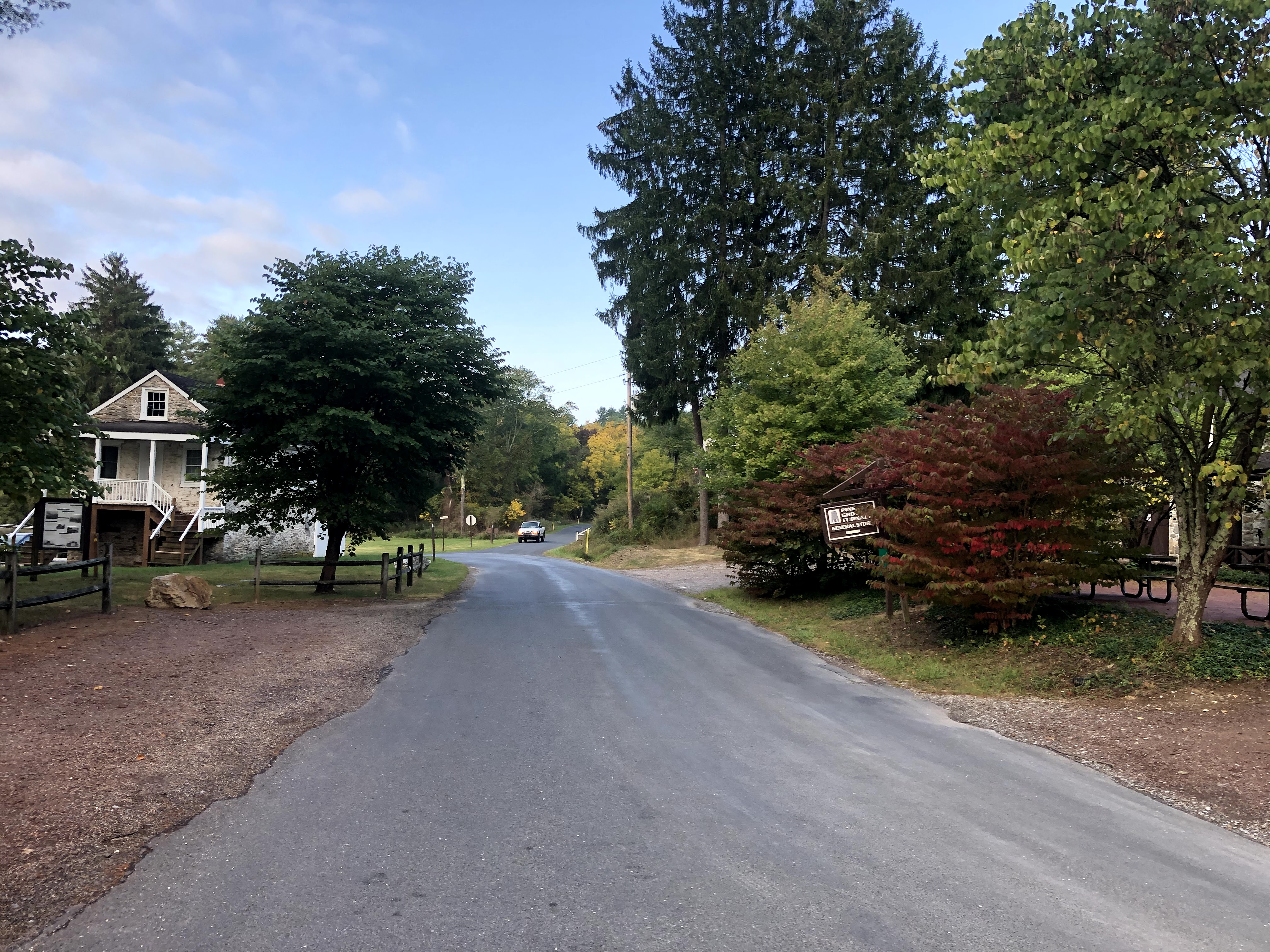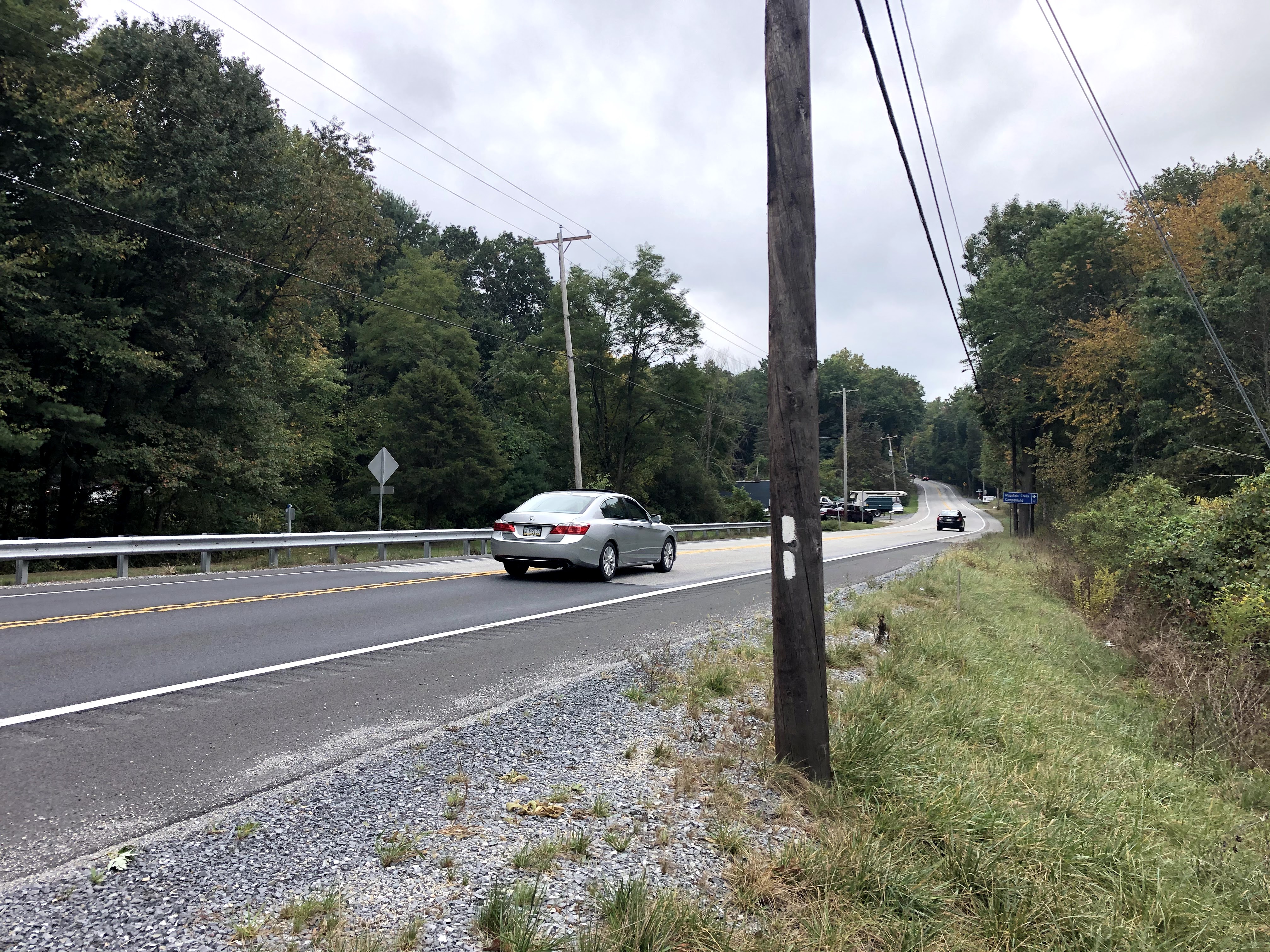 After a short bit of walking more, out of nowhere, you can see an auto repair shop from the trail. It sits on Carlisle Road. And right here, the blazes are confusing. If you emerge going North on the trail, and you look right, it looks like the blaze is telling you to walk down the road to your right. That is not where the trail is. You need to cross the road and go left, at which point you’ll see Appalachian Trail Road and a little further down, the AT. Be careful here!