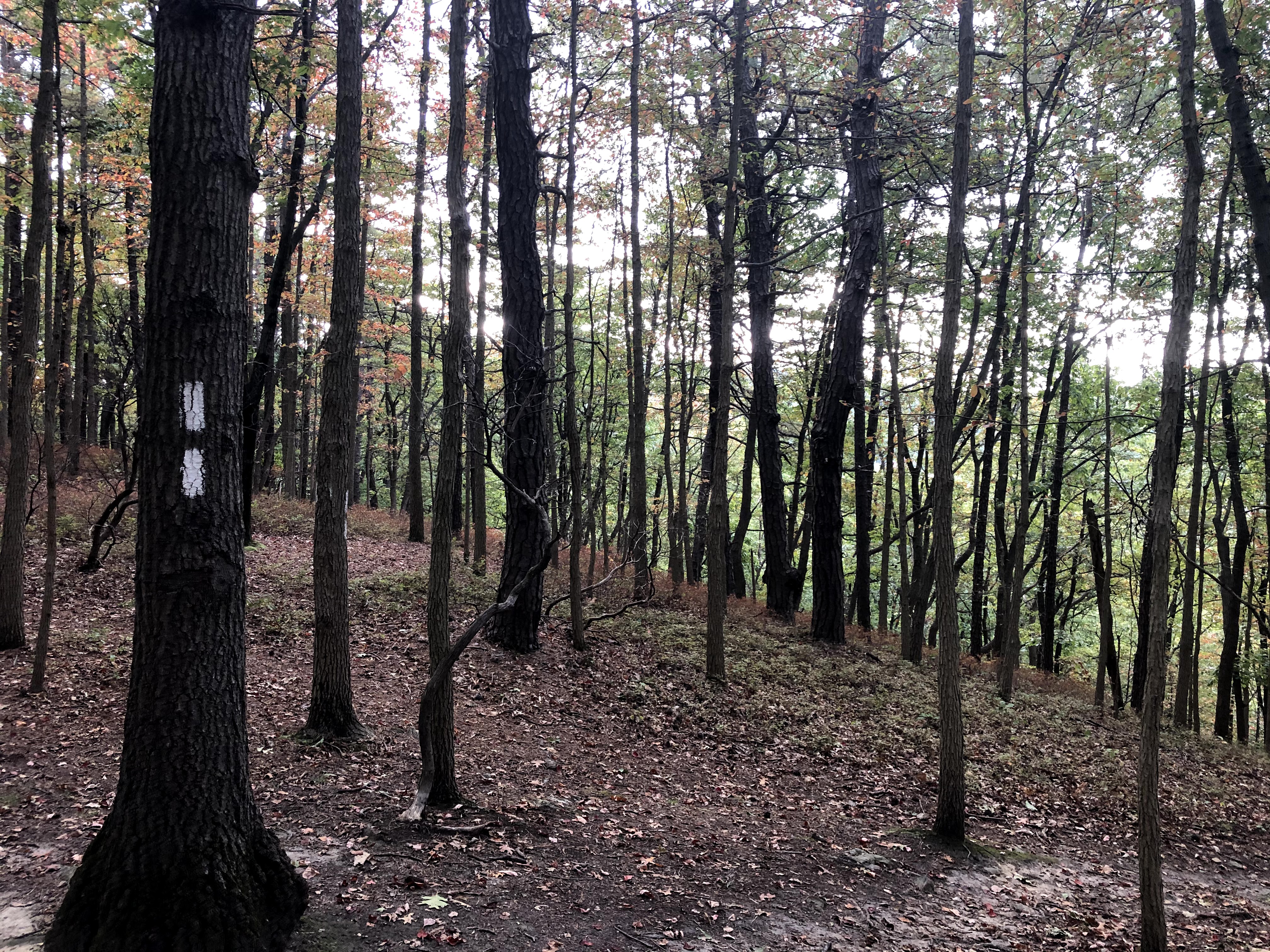 Our day started off with an oops. Instead of parking where we did last time, because we were driving south we ended up on the opposite side of the road. In my head, I knew we had to stay on the same side of the road as our car to start walking north. This was wrong. As we started walking up among the fall foliage, Henry said, “Are we sure this is North?”