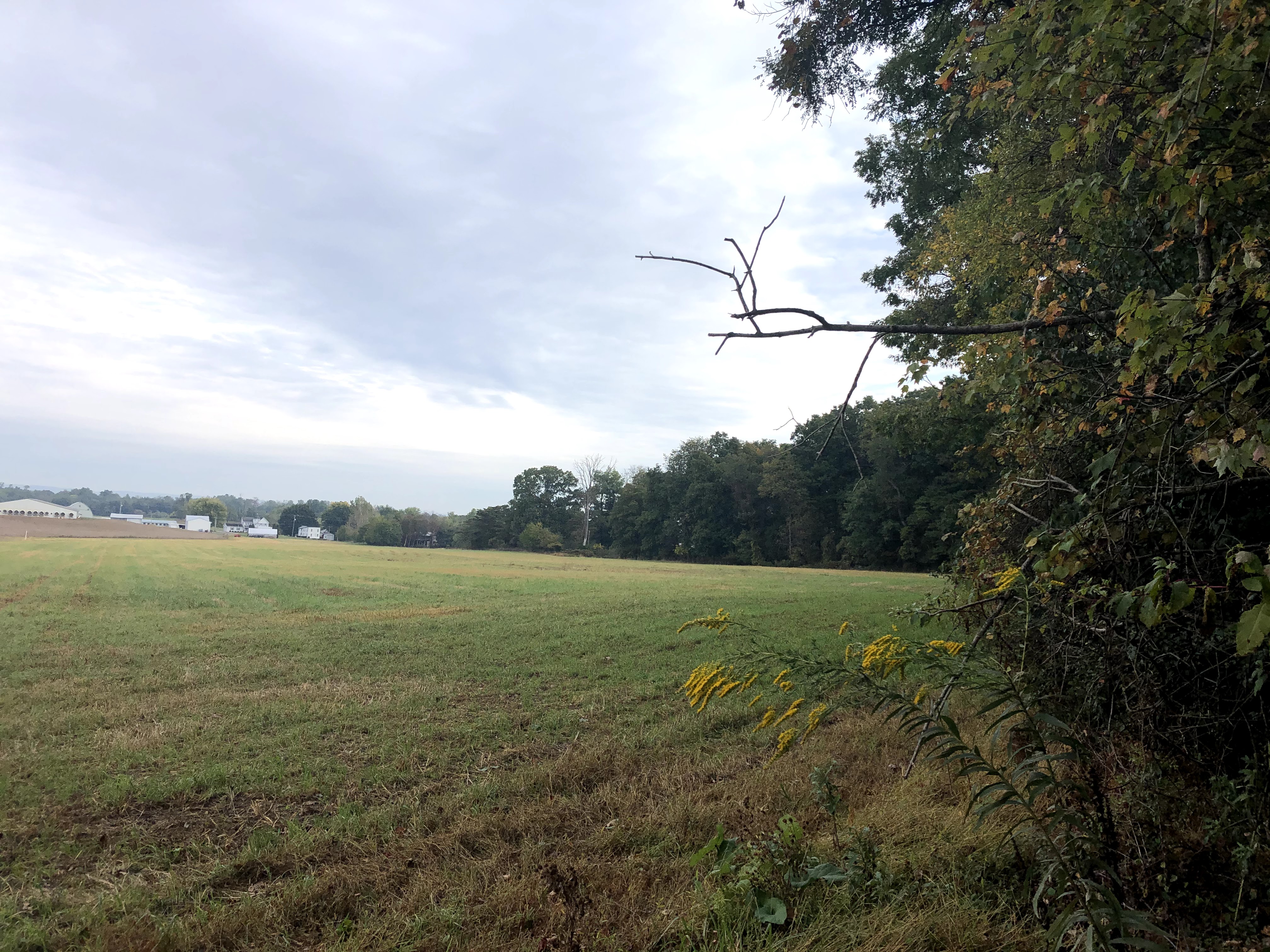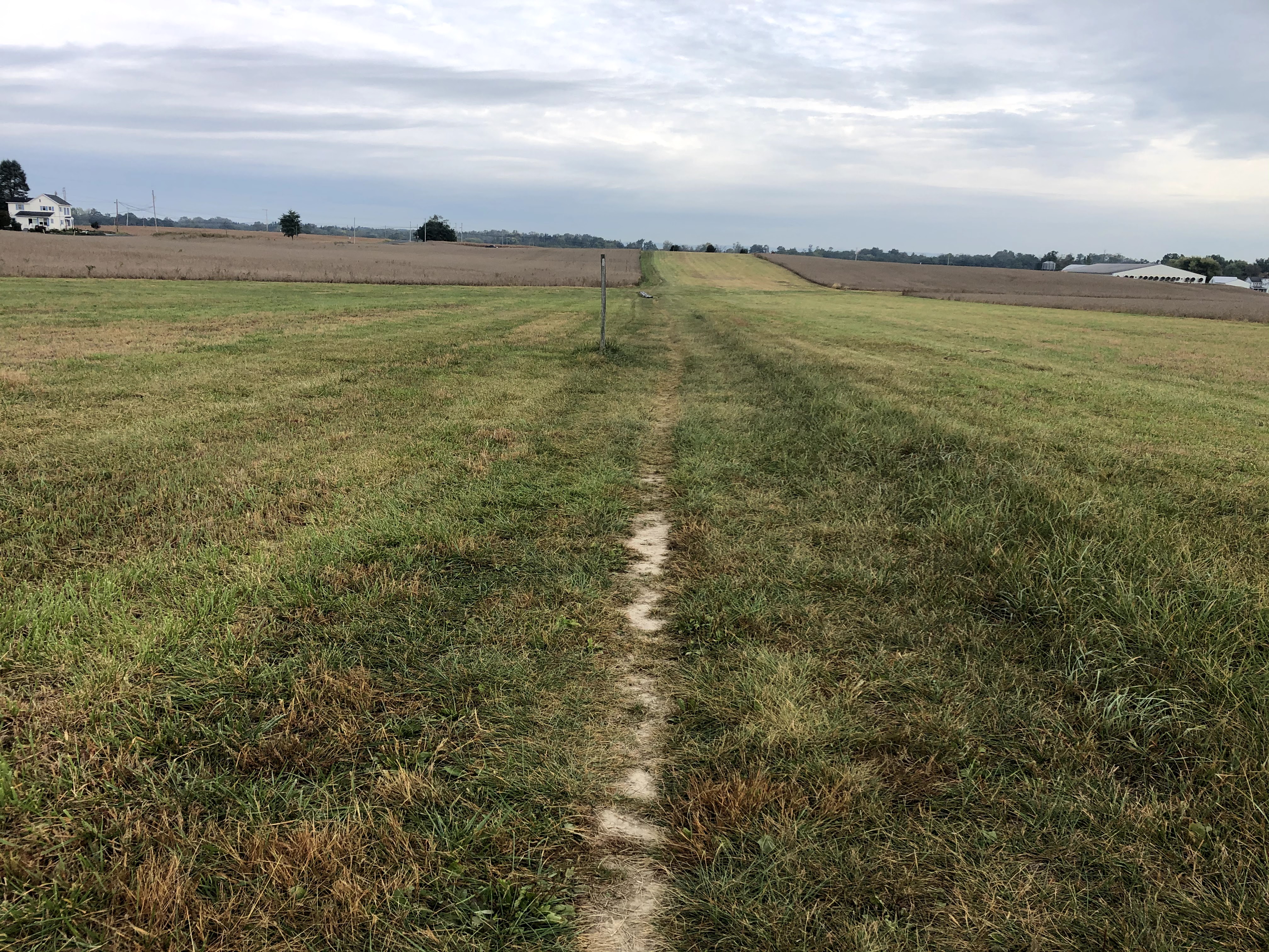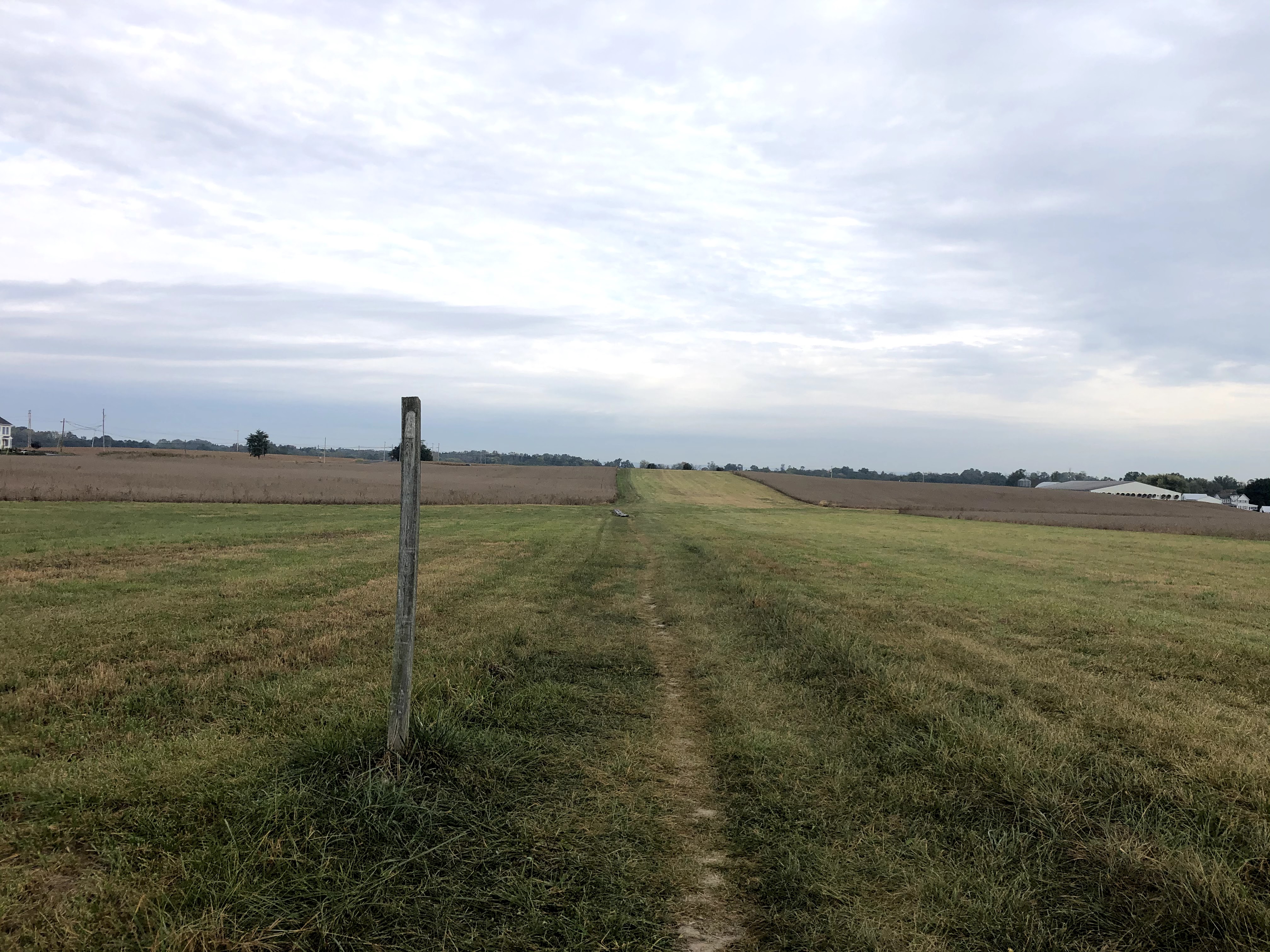 You then stay in the woods, but only in the small stretches of woods between farms. You can always see the either soybean or corn fields just behind the trees. At one point you have to cross York Road/Hwy 74 which was busy when we crossed.