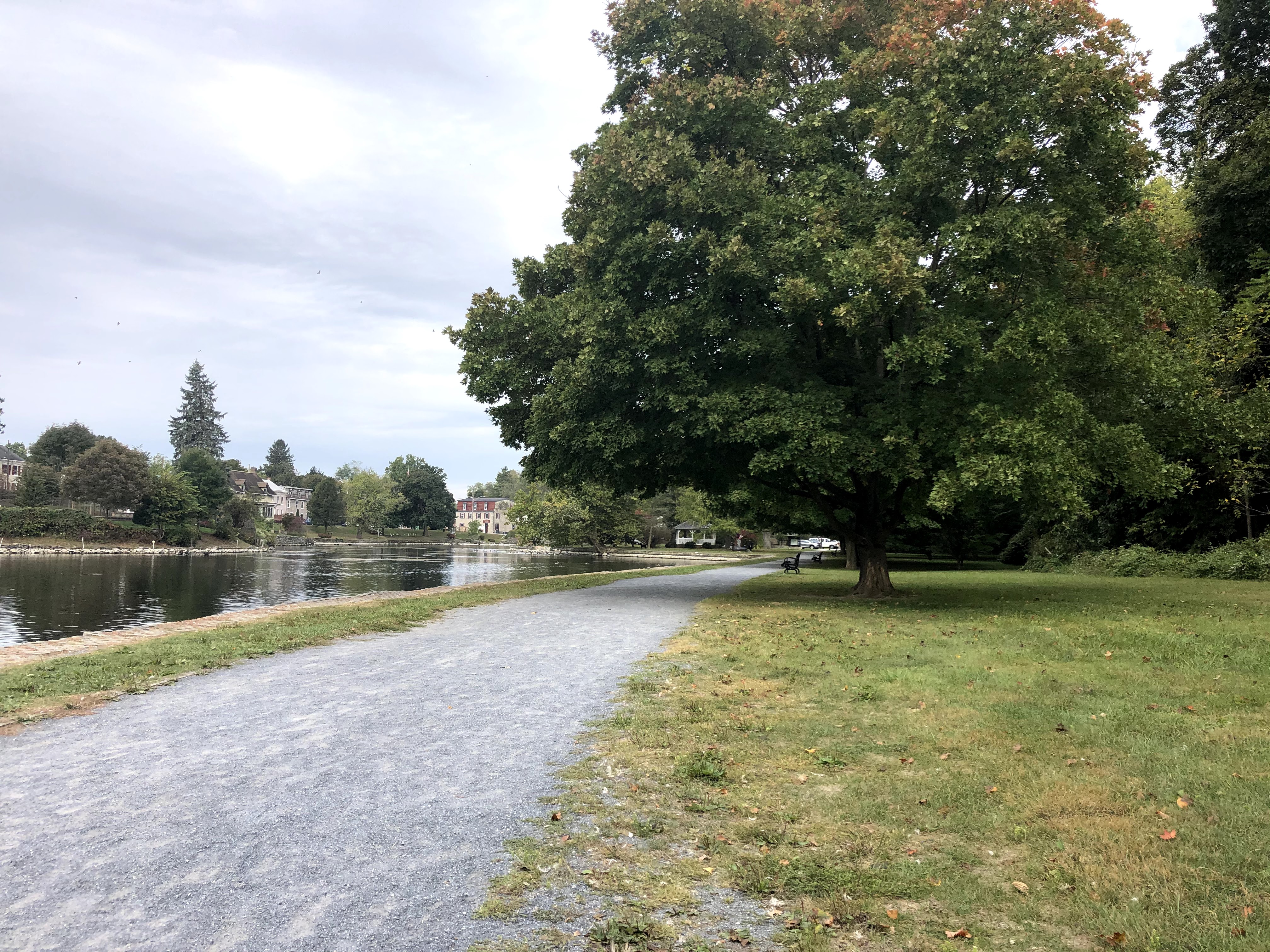 Hiking in the cold among soybeans at 8:30 in the morning, passing Trump signs as we go, does not have the same effect. Ah well. Once you get through all the farms (the first time), the AT goes through the small town of Boiling Springs. This part got a little confusing blazes-wise, especially when crossing over the bridge right before town really starts (It’s on the other side of the road and across the bridge). But then it brings you past the lovely “Children’s Lake” which is a man-made pond with ducks, geese, and I’m pretty sure swans.