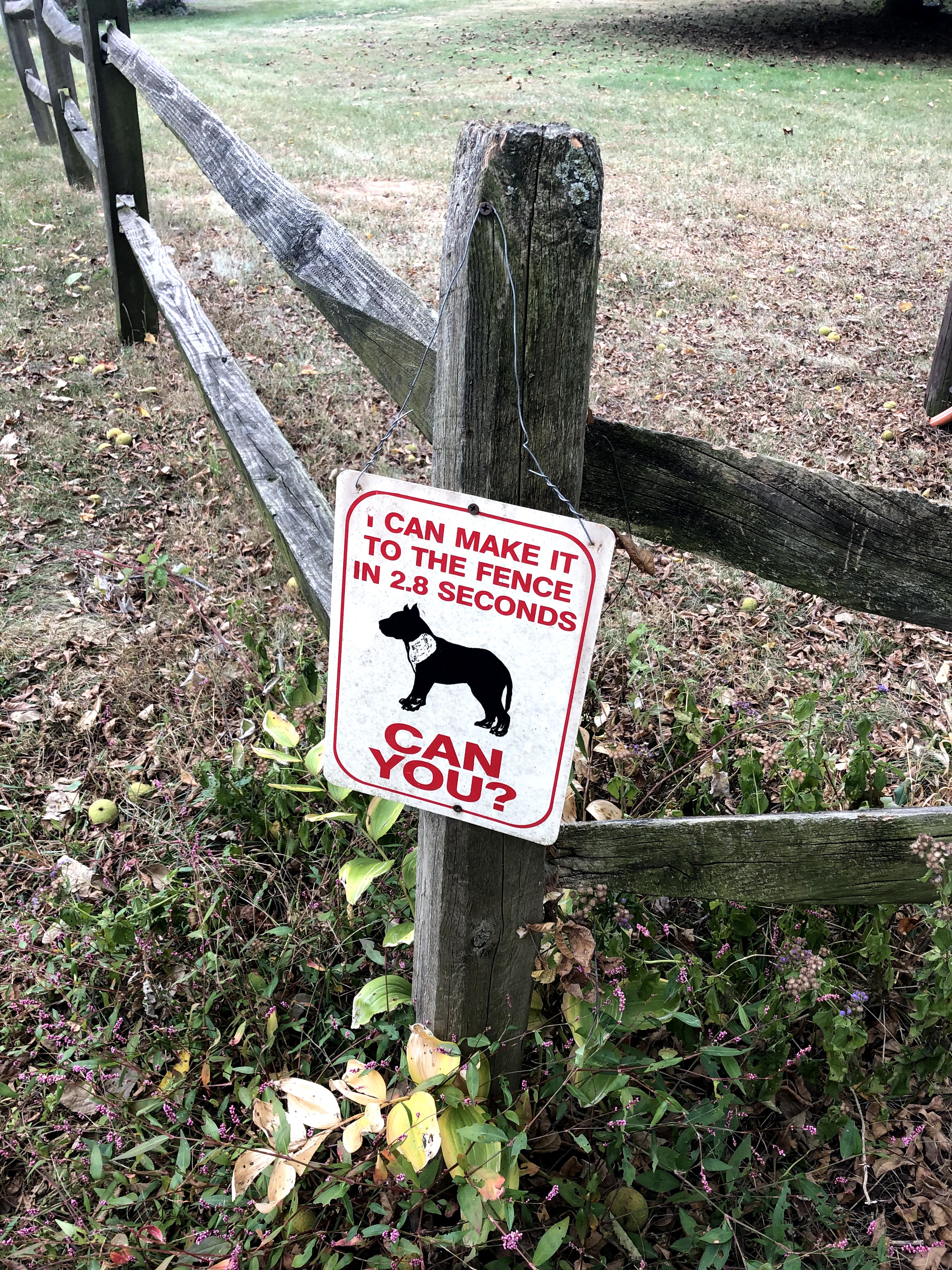 We did pass a farm that was…ready? hoping?…for burglars. They had a lot of signs like the one below, and one that said, “Burglars please carry ID so we can alert next of kin.” Sweet that they’re so conscientious. We passed a much nicer farm that had lots of cows and goats a little further away. When I eventually grow up, I would love to have a farm with goats. And maybe one or two cows. Maybe a flock of chickens. And a huge garden, obviously. Henry is shaking his head he’s so enthusiastic about this dream.
