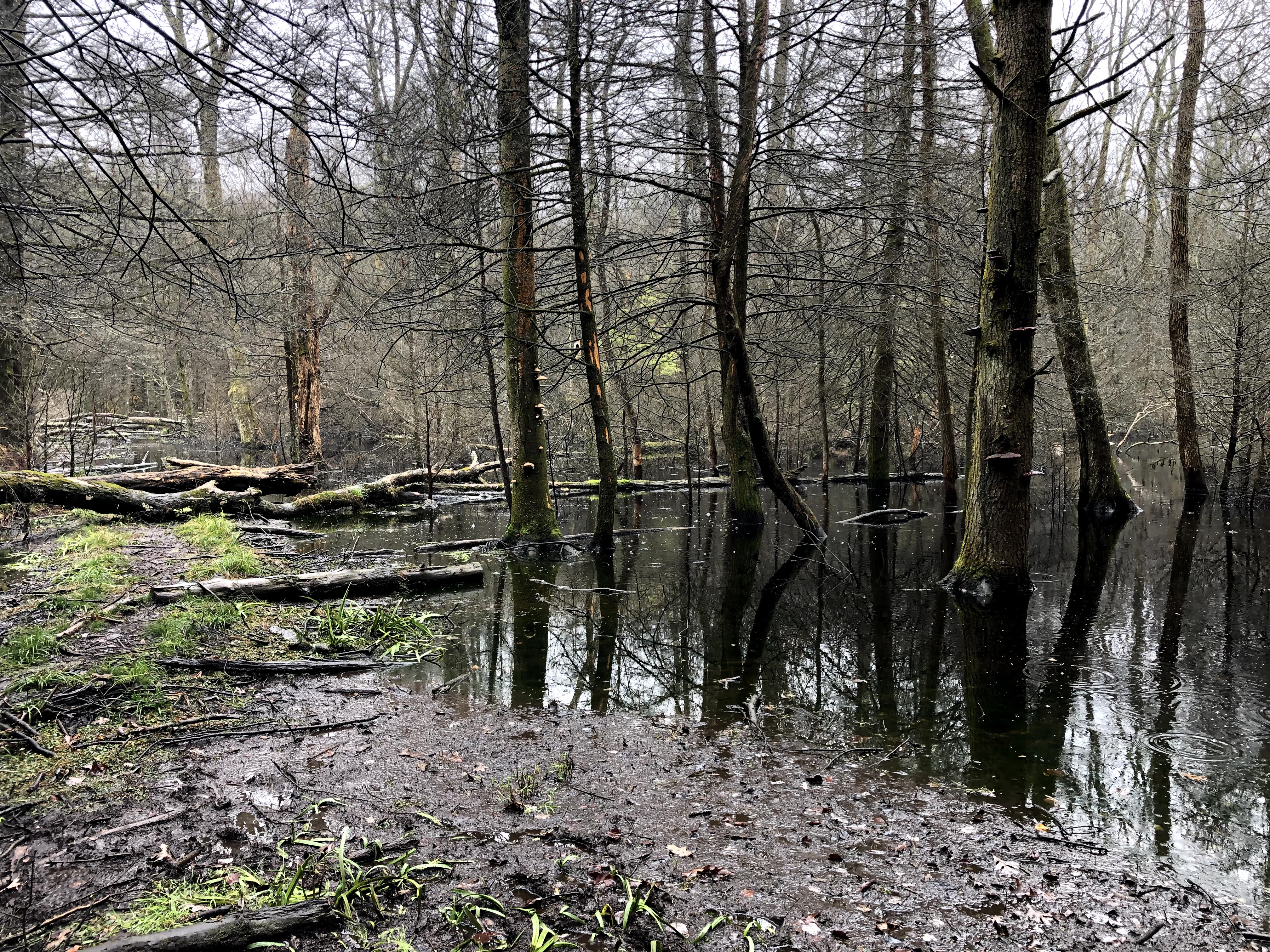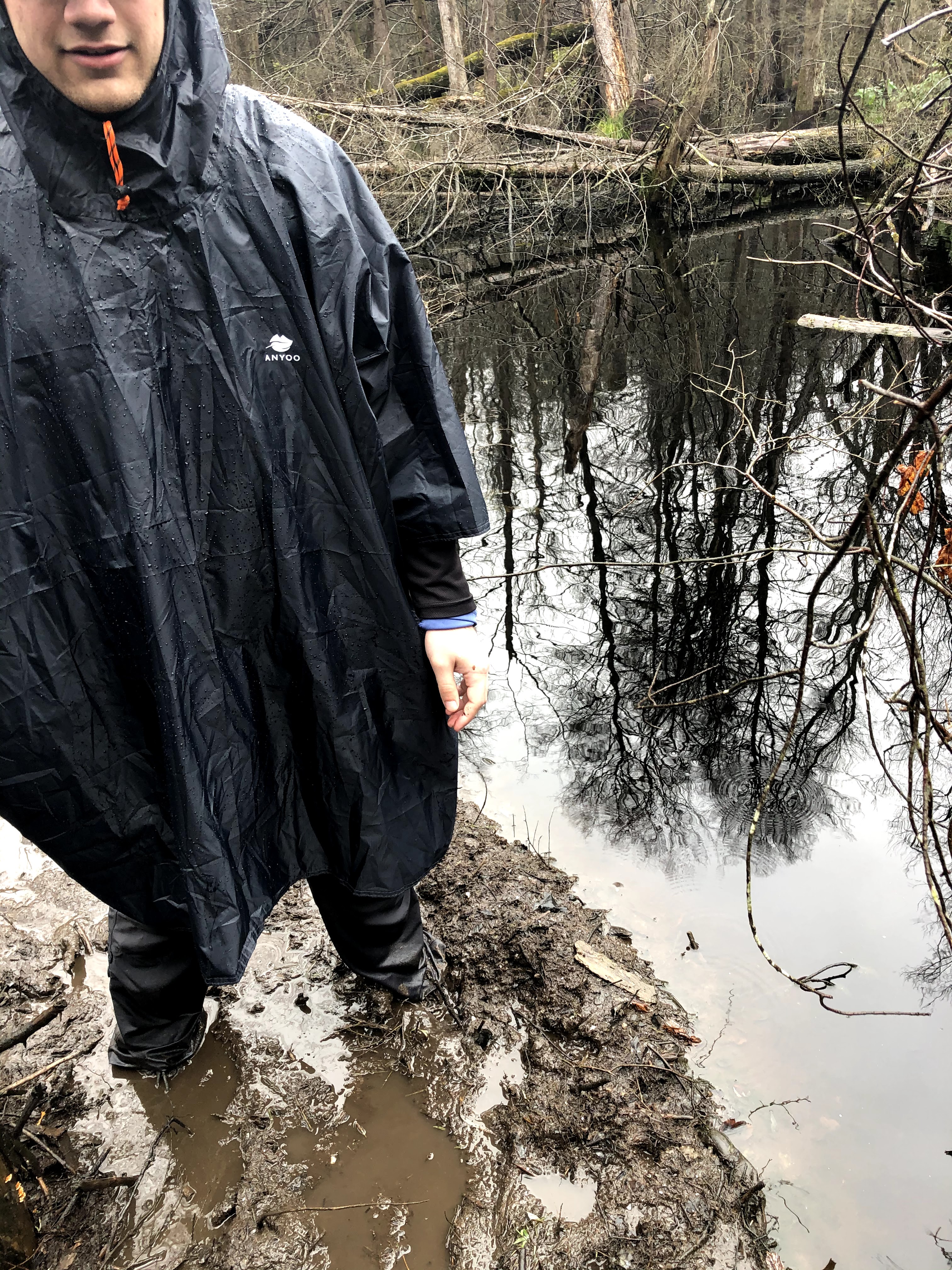 I tried to navigate as best I could, finding places where sticks and logs were resting on top of the water, saving my calves as much as possible from being covered in (I have since learned) polluted mud from an acid spill. At a point though, I just gave up, and wanted to get across as quickly as possible. About 3/4 of the way across, I realized it had stopped raining.