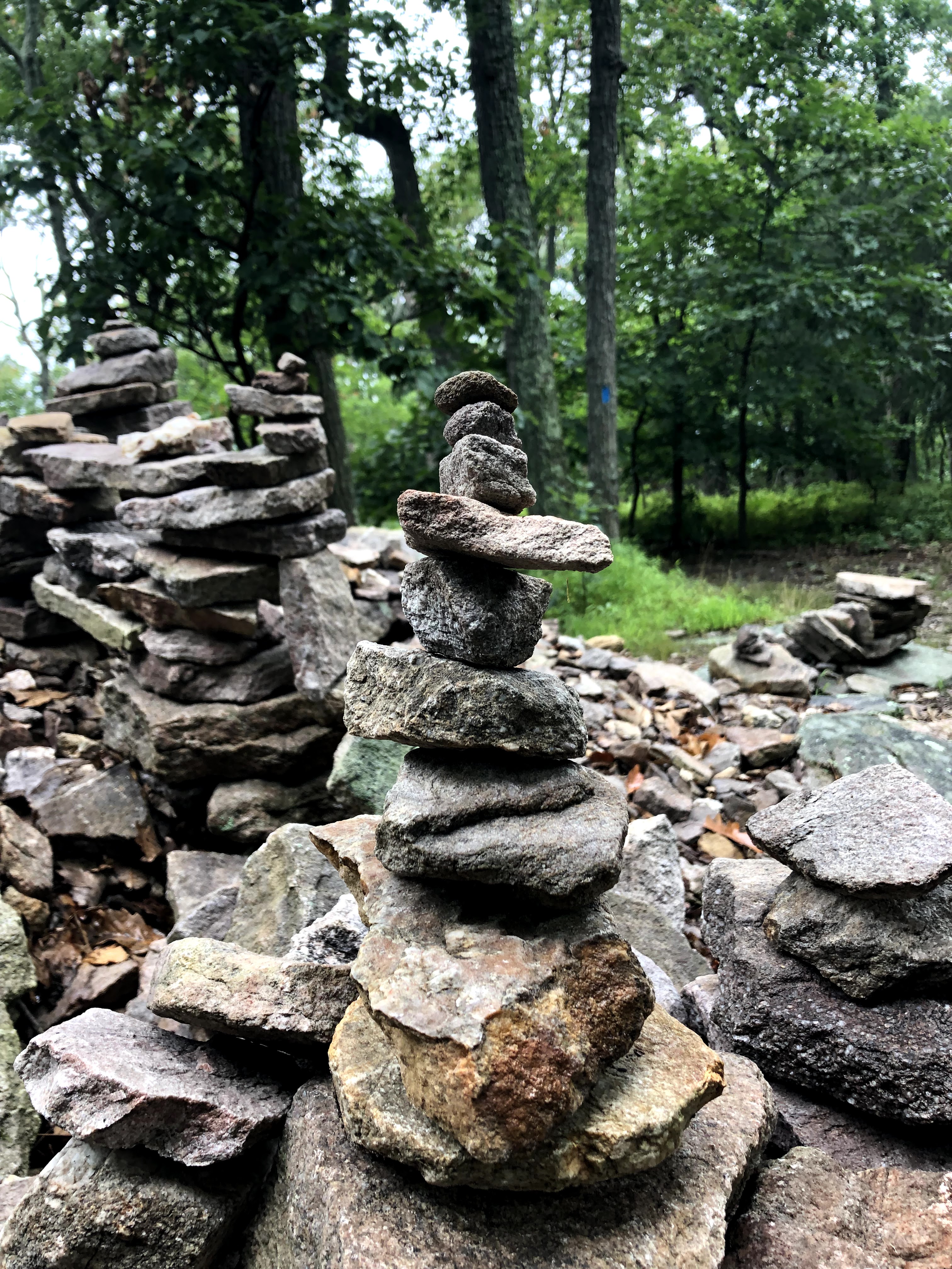 The blue trail is a nice little trail with some elevation change, but nothing too crazy. It was exactly the right trail for the two of us who aren’t sure we’ll be able to do much more hiking this year while Henry continues to heal. There wasn’t too much to see, outside of the general niceness of being back in a forest, and we didn’t see very much wildlife either. We did pass a pile of rocks where people had added their own cairns.